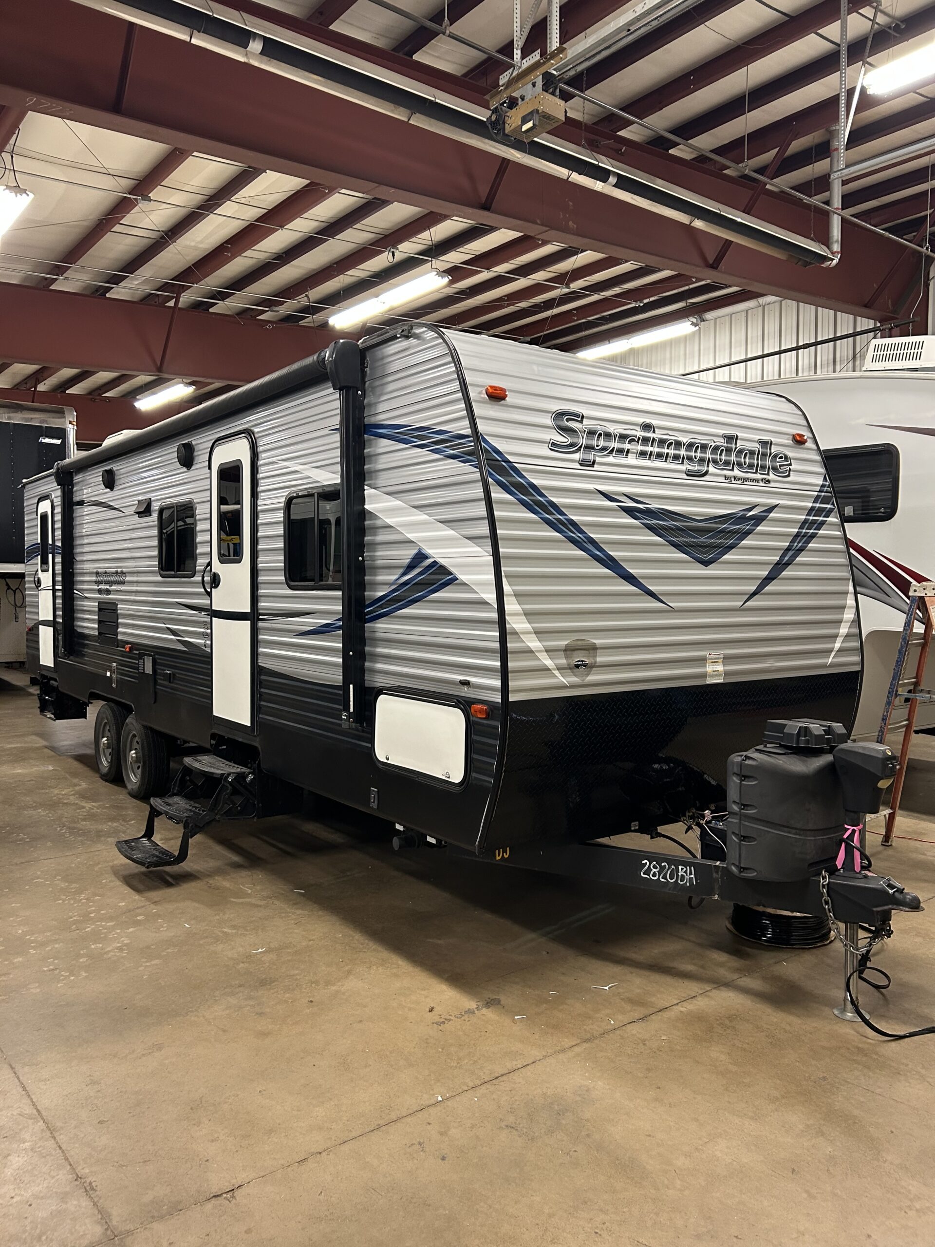 Clean, family-friendly bunkhouse travel trailer ready to camp. The rear features a set of double bed sized bunks that the kids will surely love. Queen master ben, large slide, Power Awning & outdoor speakers. Tons of storage inside and out.