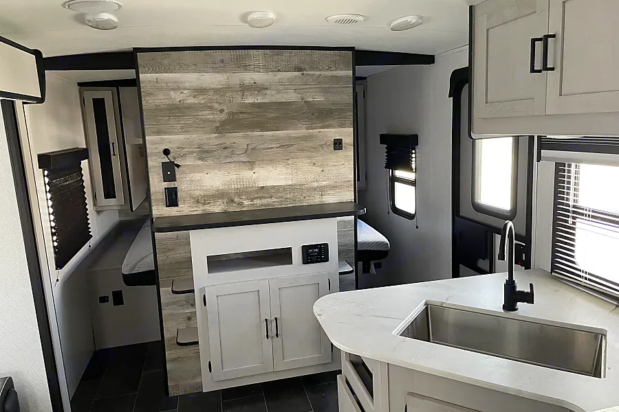 The Mallard M32 is designed for families who want comfort, space, and convenience while traveling. With its dual opposing slide-outs, private bunkhouse, and open living area, this trailer offers the perfect home-away-from-home for your camping adventures.