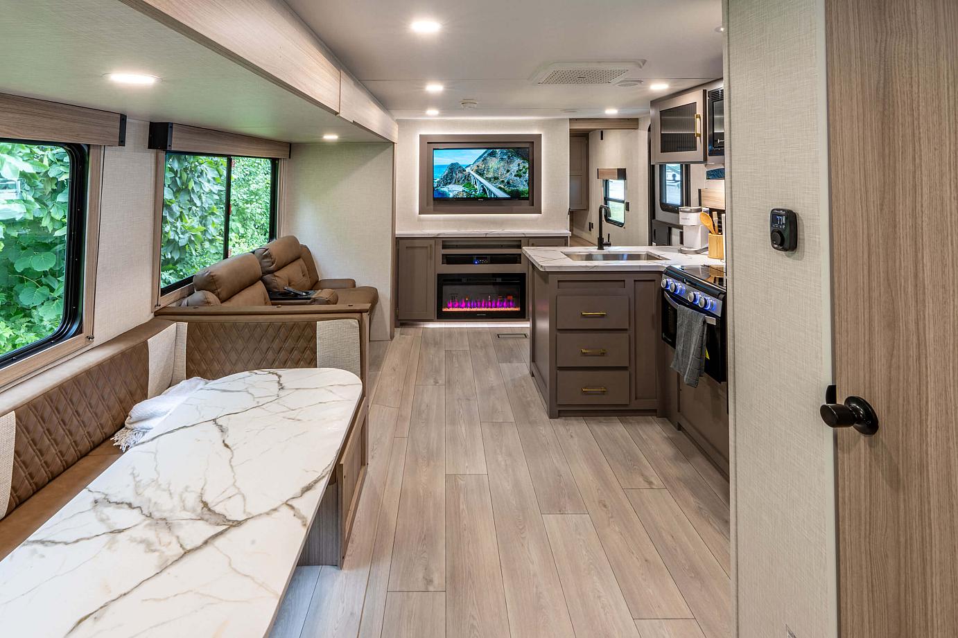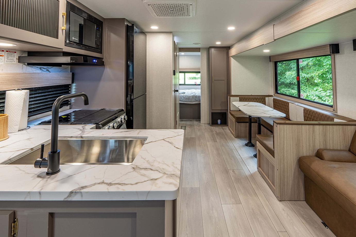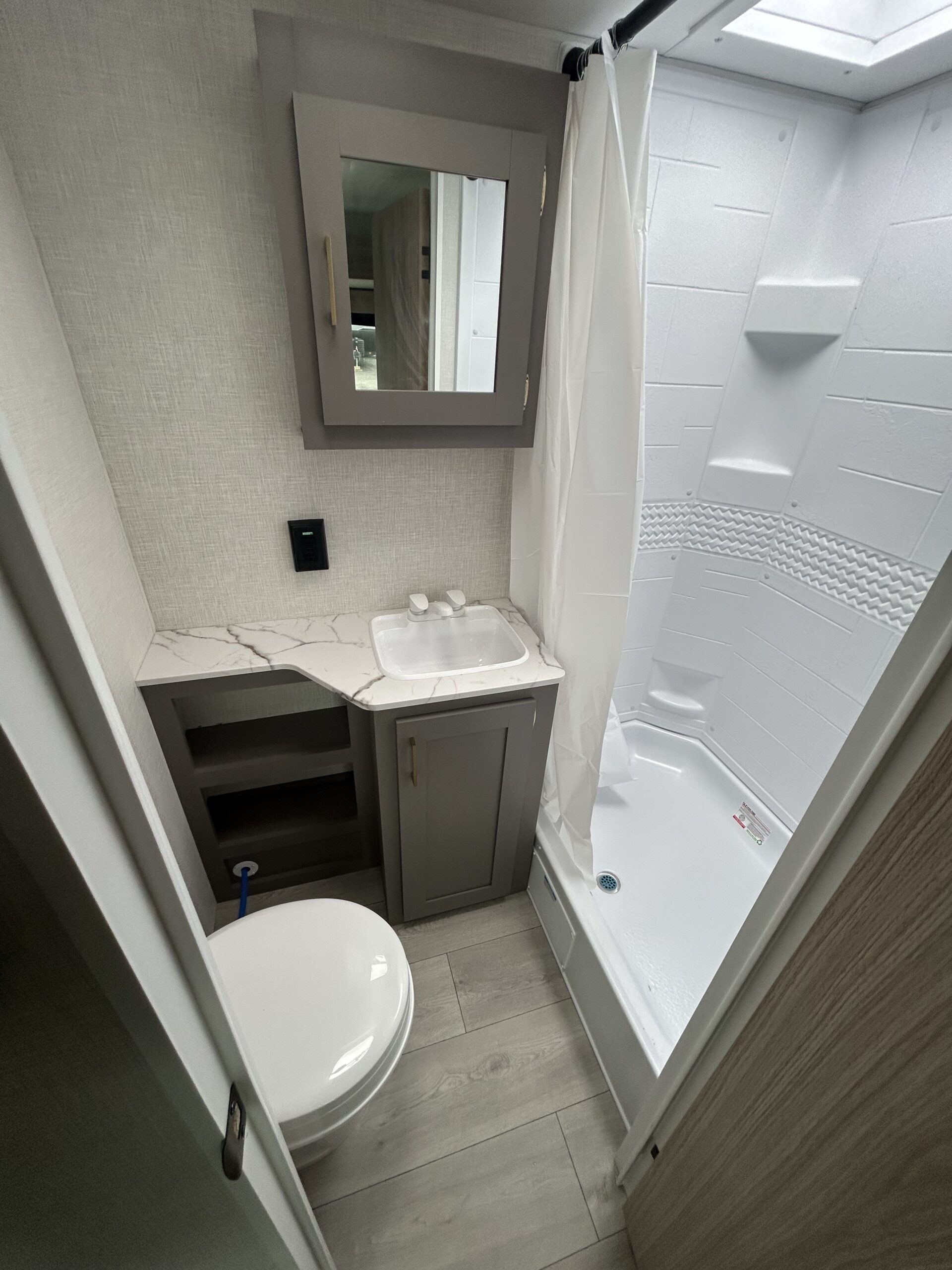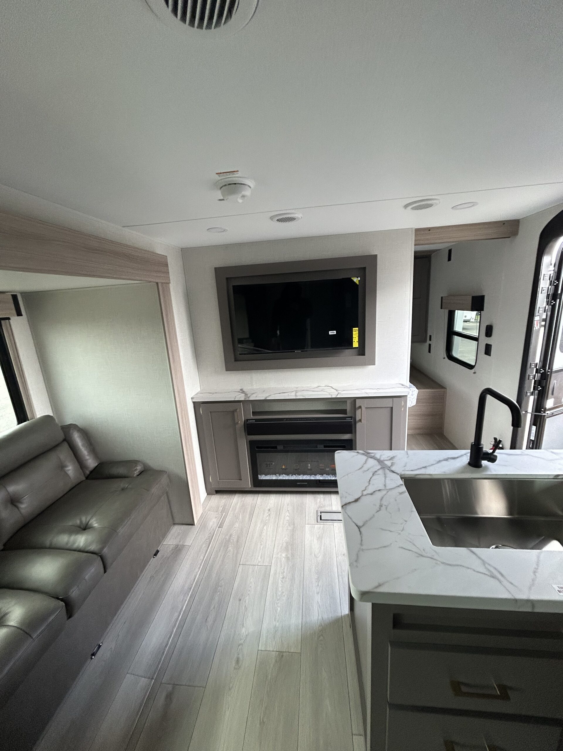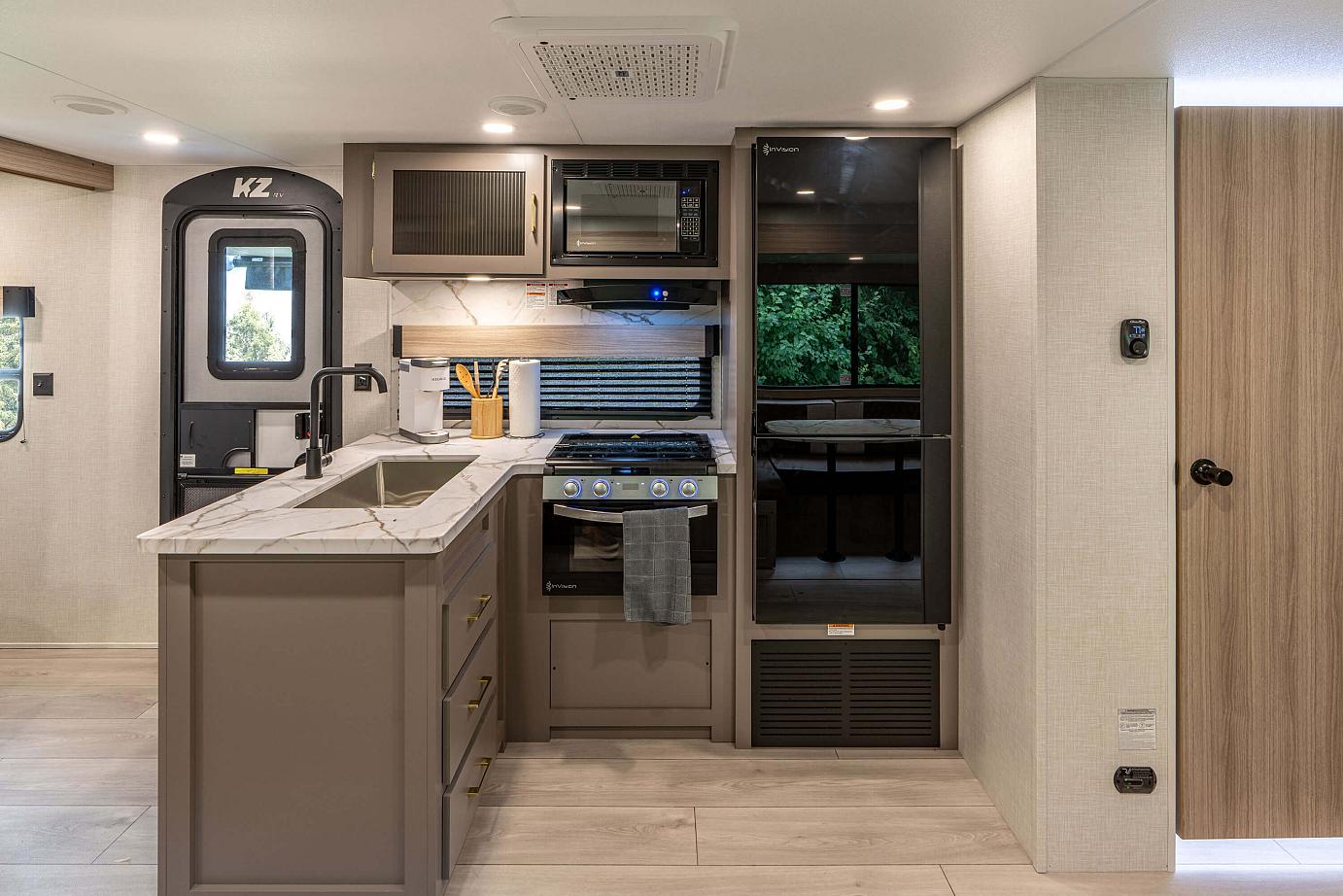 KZ Exclusive Tough Shield Exterior Metal,1-Piece, Seamless, Walk-on, Tufflex Roofing Material w/Lifetime Warranty, 3/8″ Fully Walk-On Roof Decking. Radius Truss Roof Rafters, Awning w/Drip Rail & Spouts, Radius Entry Door, Extra-Large Radius Baggage Doors, Tinted Windows, Diamond Plate Rock Guard, Rear Bumper w/Sewer Hose Storage. (2) 20# LP Bottles, 30 AMP Service, Cable Hookup, Power Vent in Bath, Shower Surround. Fitted Sheet, Digital TV Antenna w/Booster,13,500 BTU A/C Water Heater Bypass Kit, Large Overhead Cabinets, Roller Ball Bearing Drawer Glides, LED Interior Lighting, Linoleum Throughout, Monitor, Panel3 Burner Cooktop, Range Hood w/12V Light & Exhaust Fan, Microwave w/Turntable, Residential Grade Linoleum10 CU FT 12V Refrigerator w/Dual Temperature Control, Black Residential Kitchen Faucet, Interior Control Switches on Overhead End Cabinet, Electric Outlet in Bunk Area, Microwave, 42,000 BTU Tankless Hot Water Heater, Solid Folding Step, Large Folding Grab Handle, Power Tongue Jack, Climate Package, Exterior Shower, Aerodynamic Front Profile w/Smooth Metal Front, Outside Kitchens (select models), Black Tank Flush, Two Toned Exterior Metal, Full Glass Friction Hinged Entry Door w/Shade Prep, Screenshot & Screen Defender, Key-Alike Program for Entry & Baggage Doors, Exterior Speakers, Spare Tire & Carrier, Nitrogen Filled Tires(4) Stabilizer Jacks, LP Bottle Cover, Backup Camera Prep, Solar Roof Prep, Battery Disconnect, Leash Latch w/Bonus Beverage Opener, Welded Aluminum Pass Through Storage Framing, Power Awning, Magnetic Catches for Baggage Doors, Battery Disconnect Switch, Omni directional HDTV Antenna w/Wi-Fi Prep