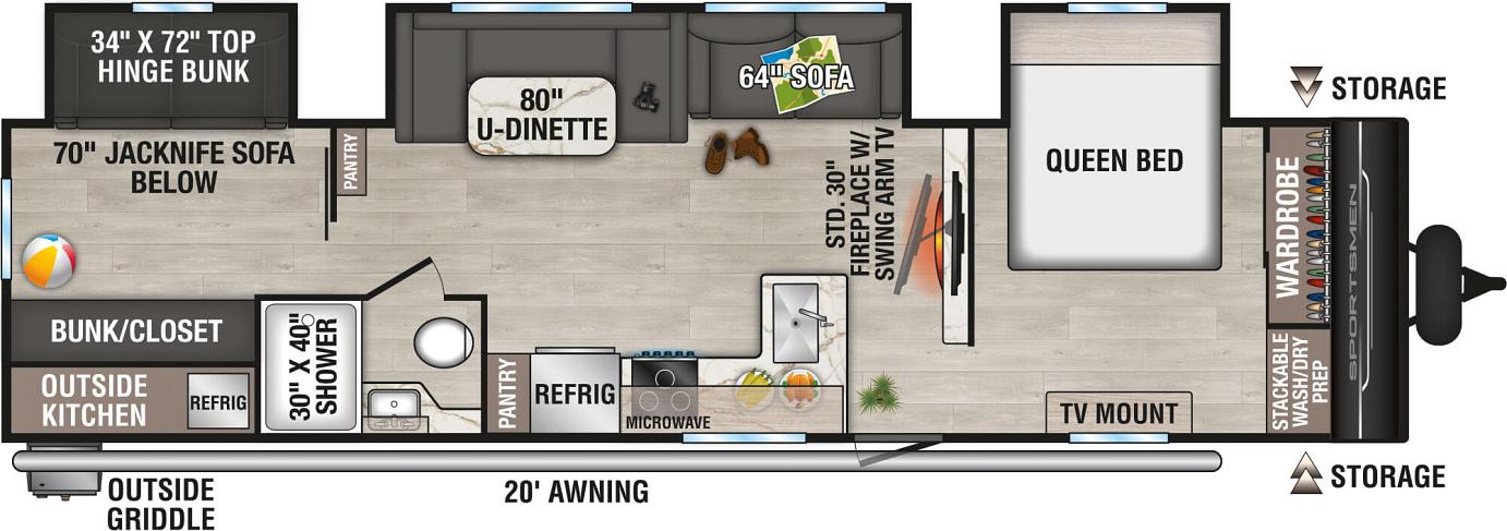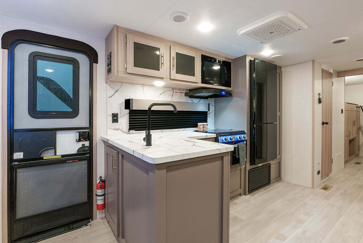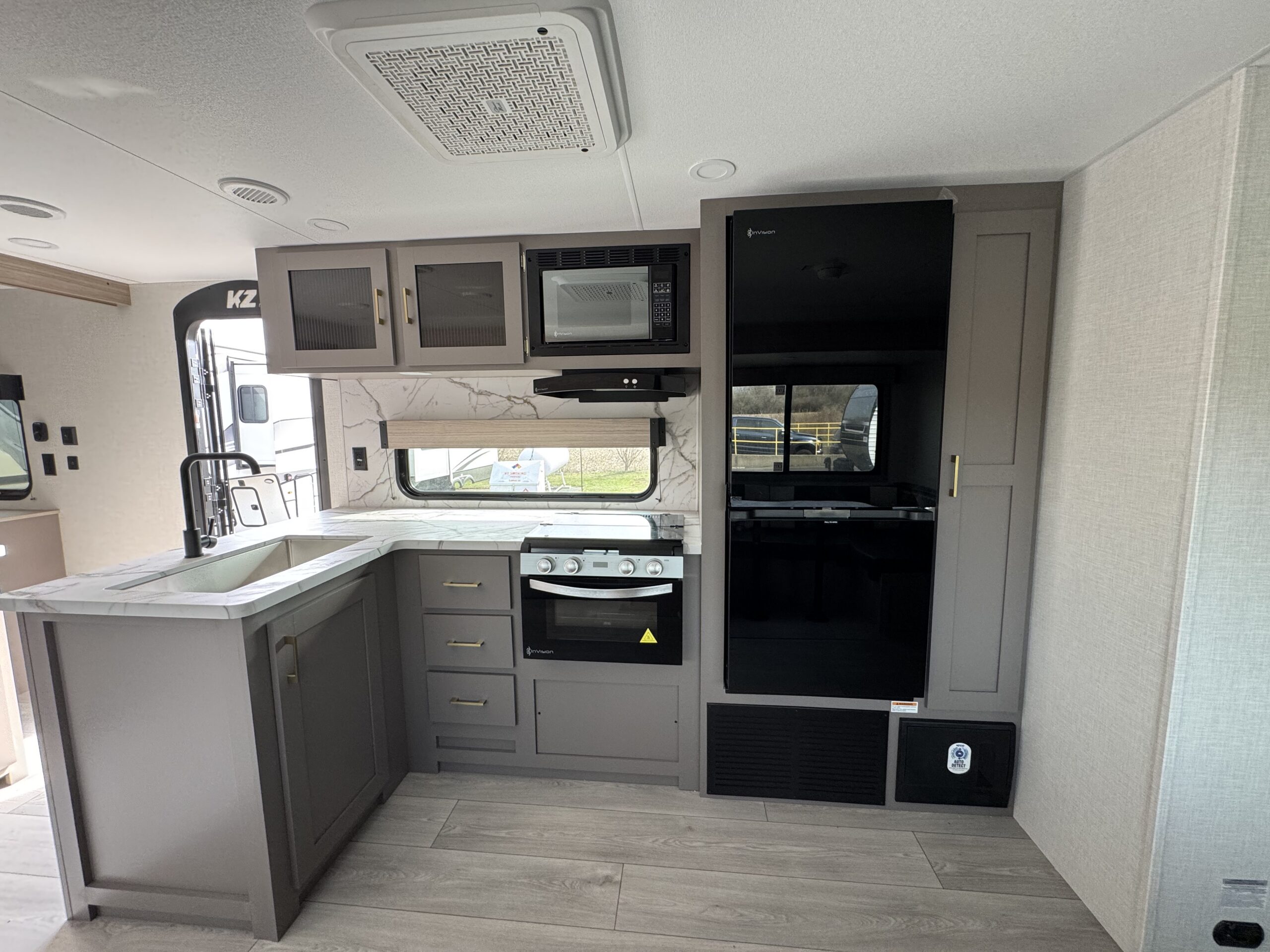 KZ Exclusive Tough Shield Exterior Metal,1-Piece, Seamless, Walk-on, Tufflex Roofing Material w/Lifetime Warranty, 3/8″ Fully Walk-On Roof Decking. Radius Truss Roof Rafters, Awning w/Drip Rail & Spouts, Radius Entry Door, Extra-Large Radius Baggage Doors, Tinted Windows, Diamond Plate Rock Guard, Rear Bumper w/Sewer Hose Storage. (2) 20# LP Bottles, 30 AMP Service, Cable Hookup, Power Vent in Bath, Shower Surround. Fitted Sheet, Digital TV Antenna w/Booster,13,500 BTU A/C Water Heater Bypass Kit, Large Overhead Cabinets, Roller Ball Bearing Drawer Glides, LED Interior Lighting, Linoleum Throughout, Monitor, Panel3 Burner Cooktop, Range Hood w/12V Light & Exhaust Fan, Microwave w/Turntable, Residential Grade Linoleum10 CU FT 12V Refrigerator w/Dual Temperature Control, Black Residential Kitchen Faucet, Interior Control Switches on Overhead End Cabinet, Electric Outlet in Bunk Area, Microwave, 42,000 BTU Tankless Hot Water Heater, Solid Folding Step, Large Folding Grab Handle, Power Tongue Jack, Climate Package, Exterior Shower, Aerodynamic Front Profile w/Smooth Metal Front, Outside Kitchens (select models), Black Tank Flush, Two Toned Exterior Metal, Full Glass Friction Hinged Entry Door w/Shade Prep, Screenshot & Screen Defender, Key-Alike Program for Entry & Baggage Doors, Exterior Speakers, Spare Tire & Carrier, Nitrogen Filled Tires(4) Stabilizer Jacks, LP Bottle Cover, Backup Camera Prep, Solar Roof Prep, Battery Disconnect, Leash Latch w/Bonus Beverage Opener, Welded Aluminum Pass Through Storage Framing, Power Awning, Magnetic Catches for Baggage Doors, Battery Disconnect Switch, Omni directional HDTV Antenna w/Wi-Fi Prep