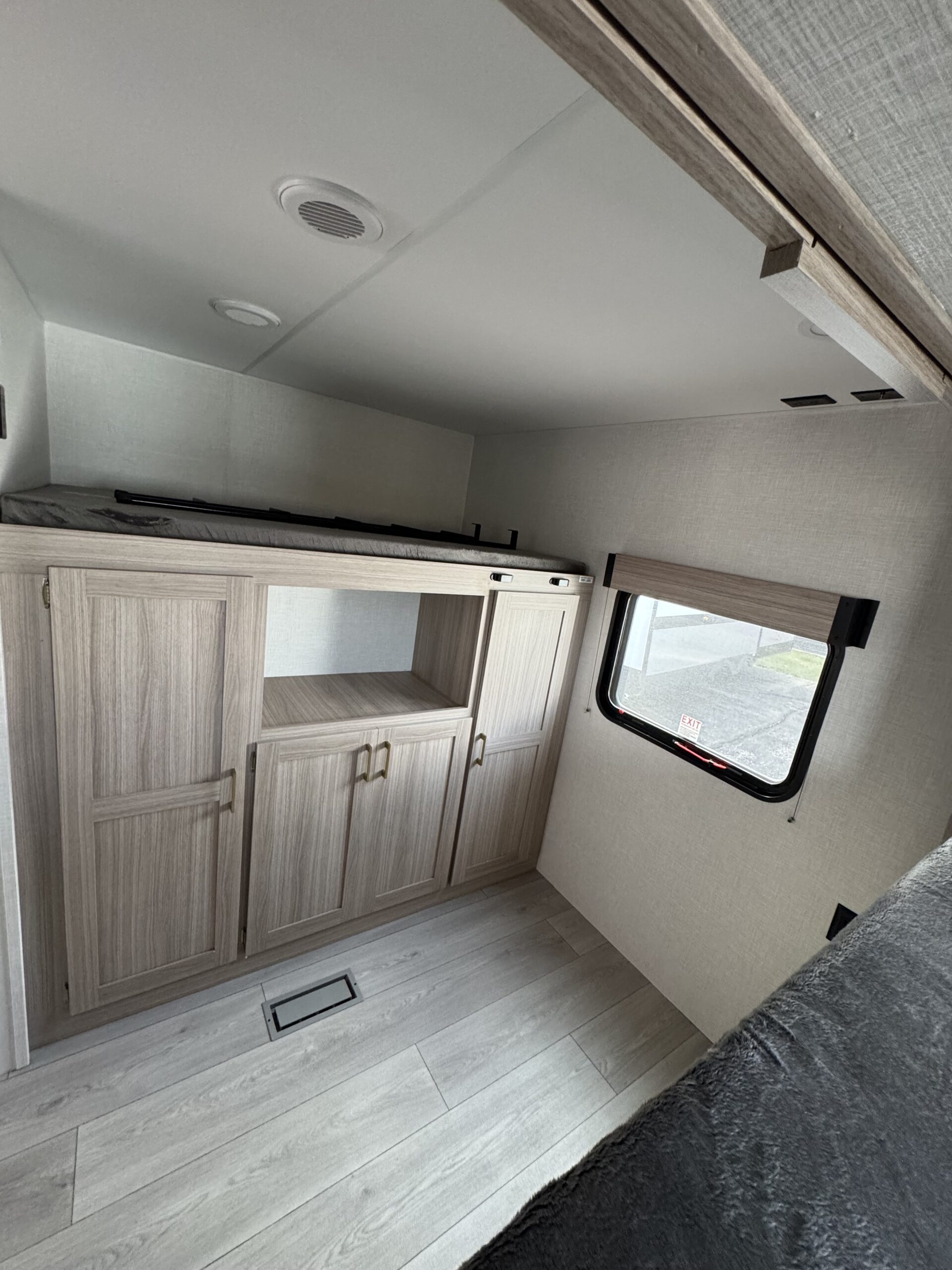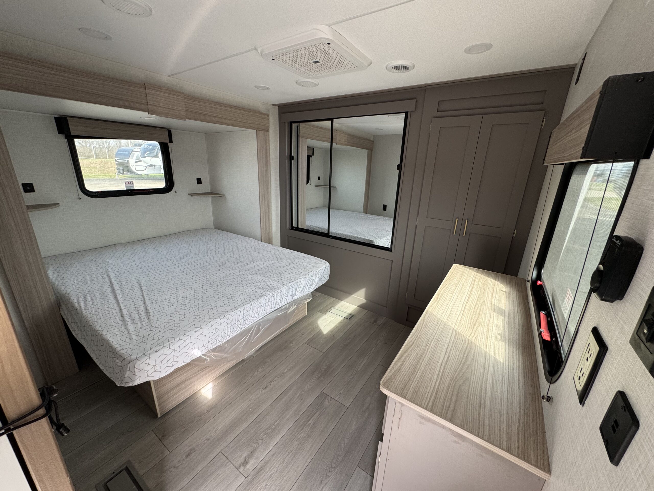 Up front, you’ll find a comfortable queen bed with plenty of storage and privacy—your own retreat after a long day outside.