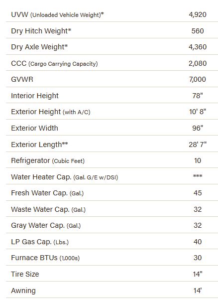 42,000 BTU Tankless Hot Water Heater, Power Tongue Jack, Aerodynamic Front Profile w/Smooth Metal Front, Black Tank Flush, Two Toned Exterior Metal, Full Glass Friction Hinged Entry Door w/Shade Prep, Screenshot & Screen Defender, Key-Alike Program for Entry & Baggage Doors, Nitrogen Filled Tires, (4) Stabilizer Jacks, Backup Camera Prep, Solar Roof Prep, Battery Disconnect, Leash Latch w/Bonus Beverage Opener, Larger Windows, Welded Aluminum Pass Through Framing, RV Airflow A/C System w/Air Filter, Beauflor Flooring in Slideouts, Lithium Ready Converter, Jackknife Sofa w/Center Console & Built-in Bolster Arms, Drop-in 2 Burner Cooktop w/Glass Cover, (2) 12V USB Ports in Bedroom, Shower Pan & Surround, Seamless Countertops w/Deep Undermount Stainless Steel Kitchen Sink, Foot Flush Toilet, Multi-Media Sound Bar Stereo w/Bluetooth, HDMI & USB Charge, Wider Pocket/Passage Interior Doors, Flush Mounted LED Ceiling Lights, New Bedroom Shirt Closet/Storage Shelving w/Charging, Power Awning, Magnetic Catches for Baggage Doors, Battery Disconnect Switch, Omnidirectional HDTV Antenna w/Wi-Fi Prep, Residential Grade Linoleum, 10 CU FT 12V Refrigerator w/Dual Temperature Control, Black Residential Kitchen Faucet, Interior Control Switches on Overhead End Cabinet w/Convenience Center for Switches, Electric Outlet in Bunk Area, Microwave